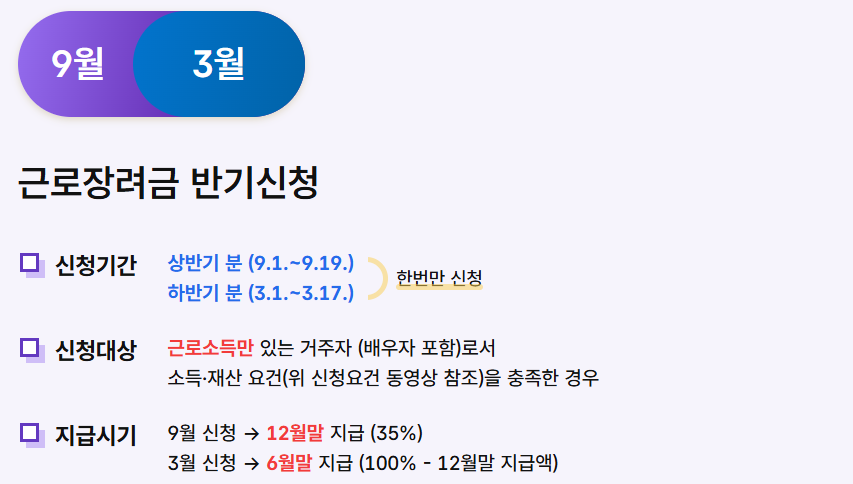 - 하반기: 2025년 9월 신청 → 12월 지급